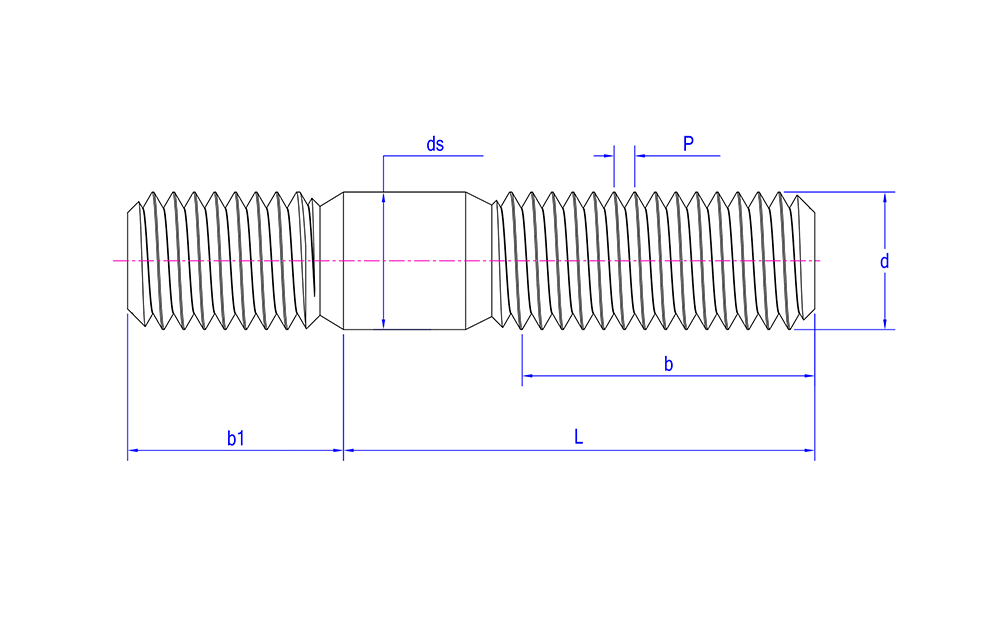 | Hoofdkenmerken | Cilindrische delen met schroefdraad aan beide uiteinden, meestal van metaal, met in het midden een gedeelte zonder schroefdraad. |