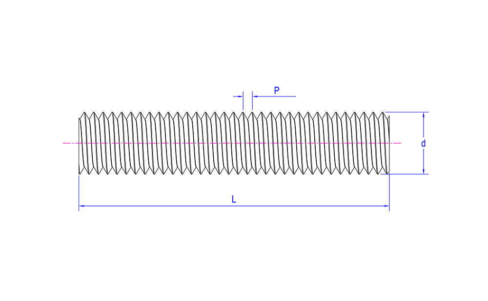 | Interne kenmerken | Schroefdraad over de volledige lengte, meestal grove draad, geschikt voor bevestiging waarbij een nauwkeurige lengte vereist is |